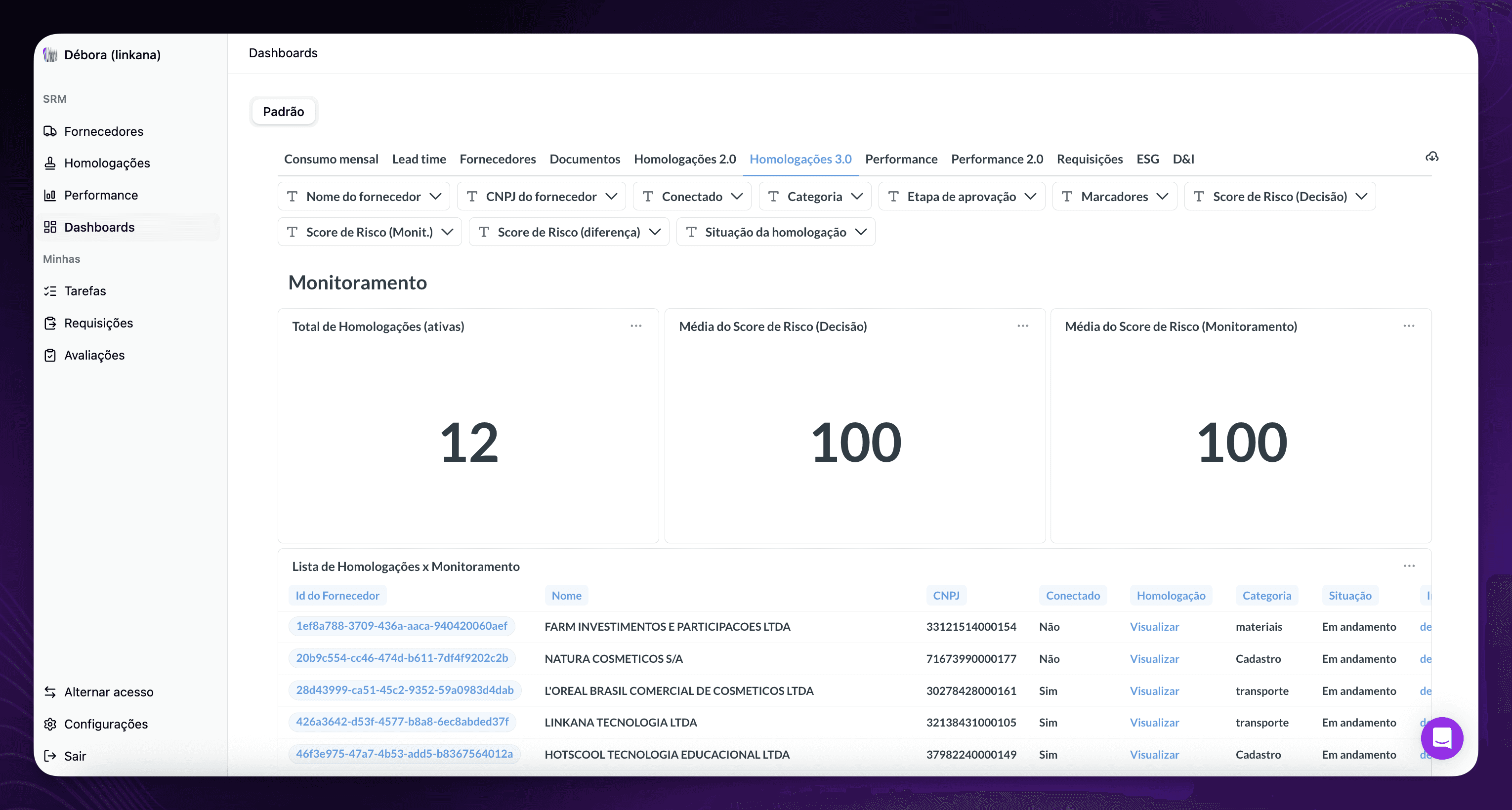 Criamos um novo dashboard de Homologações em decorrência do aprimoramento de alguns dados e do projeto de unificação de fornecedores.